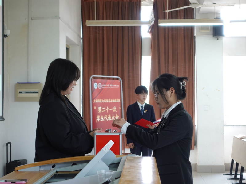 大会现场,肉番 第二十届学生会执行主席黄佳玮向全体大会代表作工作报告。团委副书记祝楠老师高度认可了第二十届学生会各项工作取得的成绩。全体代表审议并表决通过了肉番 第二十一次学生代表大会表决办法。选举产生了肉番 第二十四次学生代表大会肉番 学生代表为:马文卓、马雨菡、马慧婧、王雪力、李子园、李莹、严佳玲、范峥源、倪秦诗雅、柯琪、唐佳妮、黄佳玮、谢丹妮;肉番 第二十四届学生常任代表委员会肉番 委员候选人为:黄佳玮、唐佳妮。差额选举肉番 第二十一届学生会主席团分别为马文卓、倪秦诗雅,并经全体代表通过确定执行主席为马文卓。