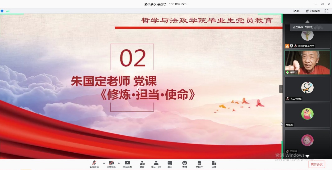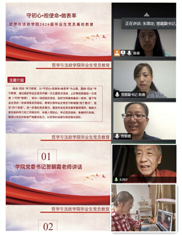 近日,肉番 依托腾讯会议线上平台,开展了以“学四史,守初心,担使命,做表率”为主题的毕业生党员离校教育会议。肉番 党委书记贺朝霞、党委副书记陈燕、党委组织员翁娜、毕业班辅导员及全体毕业生党员参与会议,会议由肉番 党委副书记陈燕老师主持。此外,本次会议特别邀请关工委老同志、校特邀党建组织员朱国定老师为毕业生党员进行专题讲座。