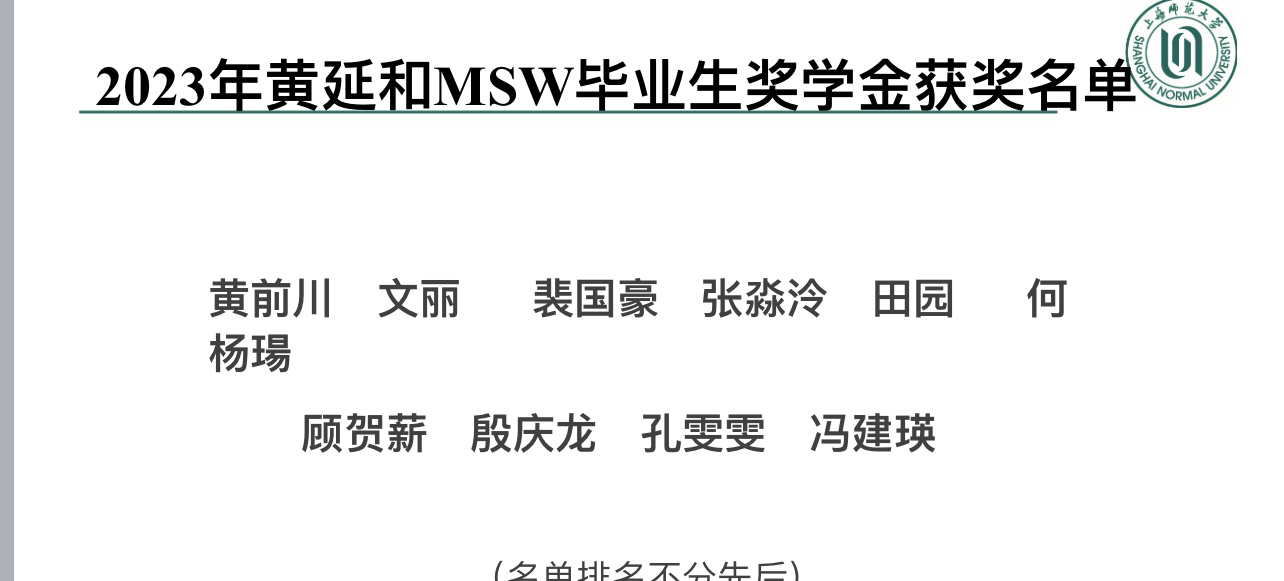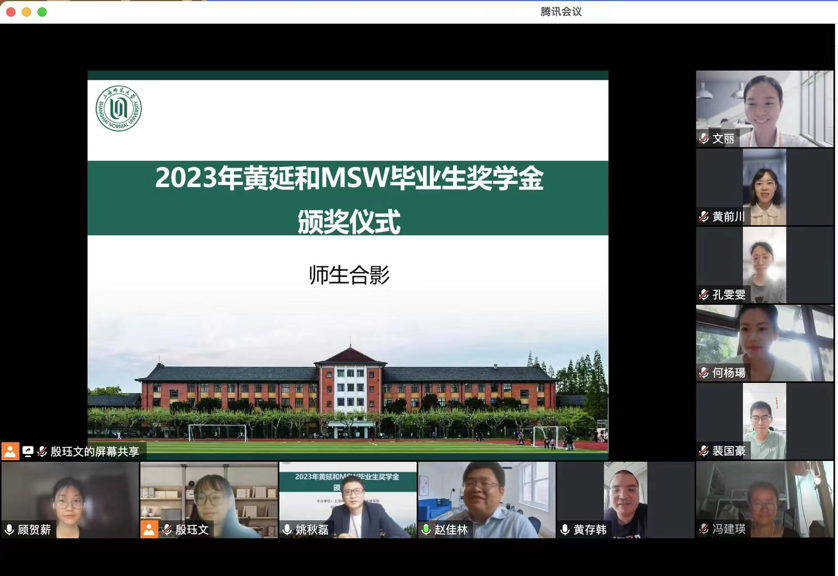 6月8日上午,肉番 社会工作硕士教育中心在线成功举办2023年黄延和MSW毕业生奖学金颁奖仪式。黄延和奖学金是由黄存韩先生向肉番 教育发展基金会捐赠,社工硕士教育中心设立的奖学金,旨在奖励每年本校MSW学位点的优秀新生和优秀毕业生。