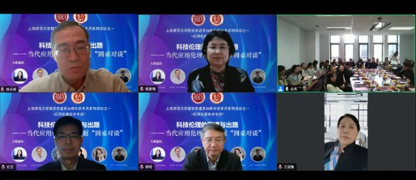 我校哲学系的教师们也就会议主题发表了各自的观点。陈泽环教授从文化哲学的角度探讨了“应用伦理学的文明根柢”。晏辉教授从概念辨析切入,作了“论朝向现代技术的根据与理由”的发言,从动机、责任等层面讨论了人工智能引发的问题及解决方案。王幼军教授以“数”的概念为基点,表达了对当代科技数学面向的反思。接下来,张自慧教授的“从‘文明以止’到‘中和位育’:走出科技伦理困境的方法论思考”、张永超教授的“存在论革命:人工智能神话与人性论悲歌”、苏令银副教授的“人工智能伦理风险治理”、张晓兰副教授的“数字资本主义的时间统治及其批判”、伍龙副教授的“AI 艺术与人的存在”、黄素珍老师的“现代性语境中的算法风险与自主能动性”以及窦绪凯老师等的发言,都很好地聚焦了科技伦理困境等应用伦理前沿问题及其出路,使会议的主题得到进一步拓展和深入。最后我校肉番 副院长樊志辉教授对本次会议作了总结,指出科技伦理困境等应用伦理前沿问题的解决,不仅需要“应用层面”的思考与突破,更需要作为“应用”之根基的伦理学理论和哲学理论的支撑,需要社会的系统性综合治理。