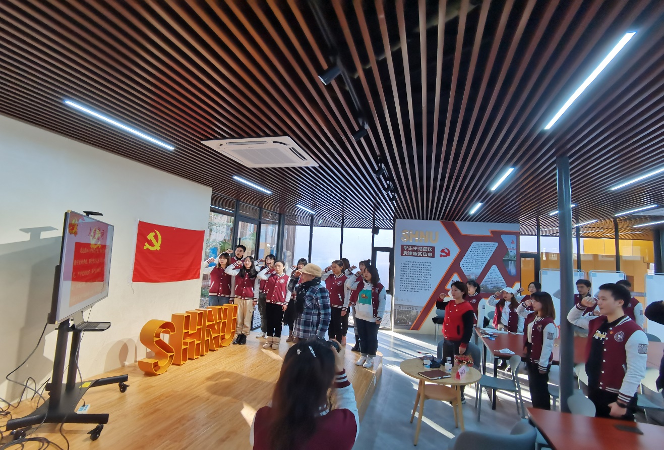 最后,管继英老师带领新发展入党的10位党员进行了入党宣誓,其他正式党员重温了入党誓词,大家纷纷表示收获满满,最后所有与会人员合影留念。
