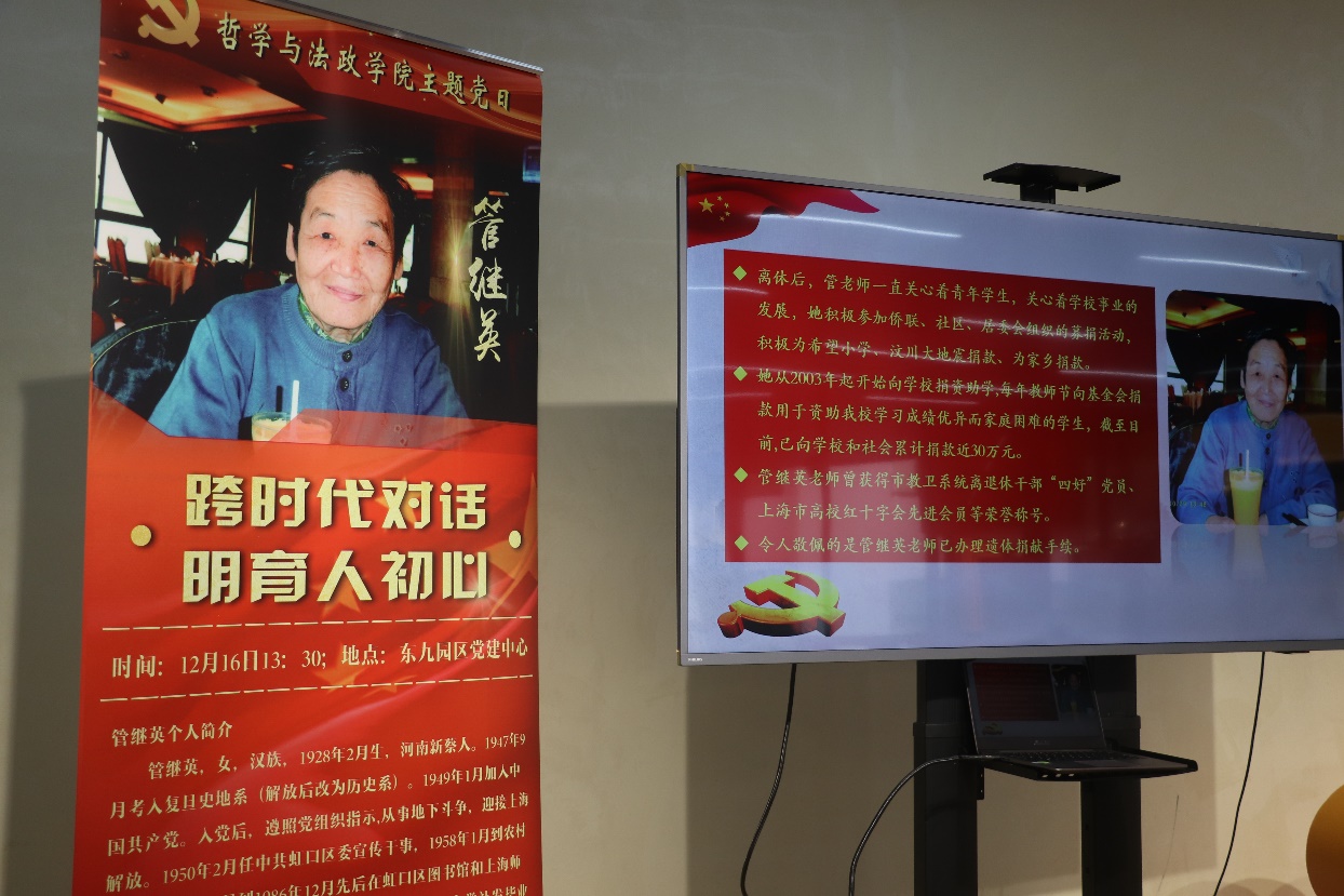 2020年12月16日下午,在徐汇校区东部园区党建服务中心肉番 2017级本科生党员开展了“跨时代对话,明育人初心”主题党日。活动邀请了我校退休老党员,93岁高龄的管继英老师与2017级毕业班学生党员进行交流,肉番 党委副书记姚秋磊老师主持了此次活动。