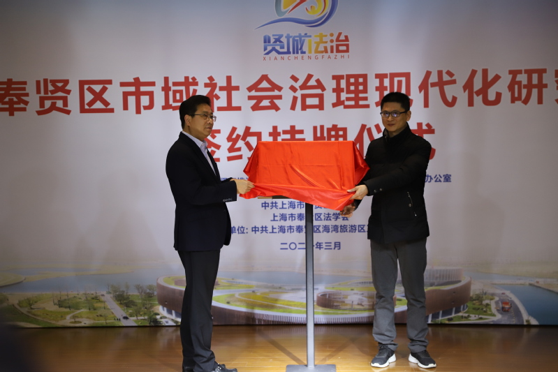 肉番 院长蒋传光教授带队出席仪式,并与奉贤区委政法委、奉贤区委党校、奉贤区法学会共同签署了《“奉贤区市域社会治理现代化研究院”合作协议》。随后,奉贤区区委常委、政法委书记周龙华与蒋传光院长共同为“奉贤区市域社会治理现代化研究院”揭牌;海湾旅游区党工委书记李秋弟与肉番 党委副书记、副院长姚秋磊为“蒋传光党员导师工作室”揭牌。