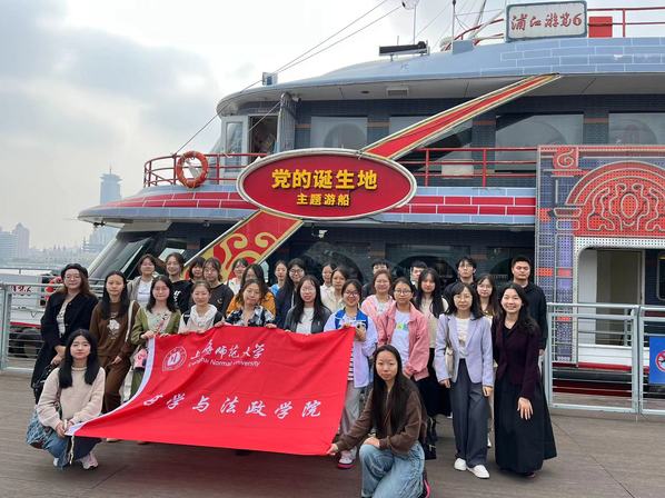 2023年10月27日上午,肉番 2023级思想政治教育(道德与法治)班的同学在班导师和辅导员的带领下来到了秦皇岛路游船码头,登上红色游船开启班级情景思政课——“一江一河 红色航程”,学习领会党的创新理论和治理方针,深刻体悟习近平新时代中国特色社会主义思想,深入了解中国迈进复兴之路的经验成就。