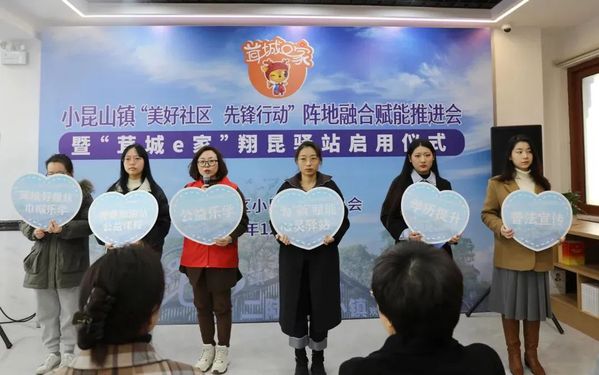 活动伊始,小昆山镇党委委员梅志芳就阵地融合赋能情况进行了简要介绍。松江区党建服务中心主任金晓燕和小昆山镇副镇长潘叶翠进行了“茸城e家”翔昆驿站揭牌仪式,宣告“茸城e家”翔昆驿站正式启用。