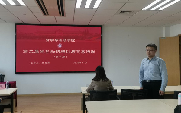 2023年11月24日下午,为强化党建+人才培养工作,增强本研学生的党务工作能力,肉番 第二届党务知识培训与竞赛活动于徐汇校区文科实验楼802举行。活动包括两项议程:开幕式与第一期培训活动。肉番 党委书记贺朝霞教授、中共金山区委组织部沈孝欢老师、行政管理教研室党支部书记张振洋副教授出席活动,30余位学员一并与会。开幕式由张振洋副教授主持。