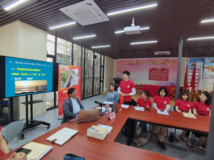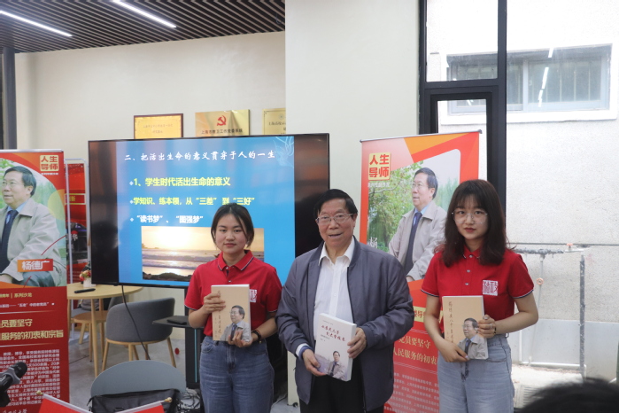 最后,杨校长还与学生党员们进行了亲切的沟通与交流,鼓励同学们珍惜时间、学知识,练本领,并向同学们赠送了自己的著作《从农民儿子到大学校长:我的教育人生》、《杨德广八十自述自选》等。同学们纷纷表示,要牢记杨德广老校长的嘱托,将全心全意为人民服务的宗旨内化于心、外化于行,做新时代的优秀共产党员。