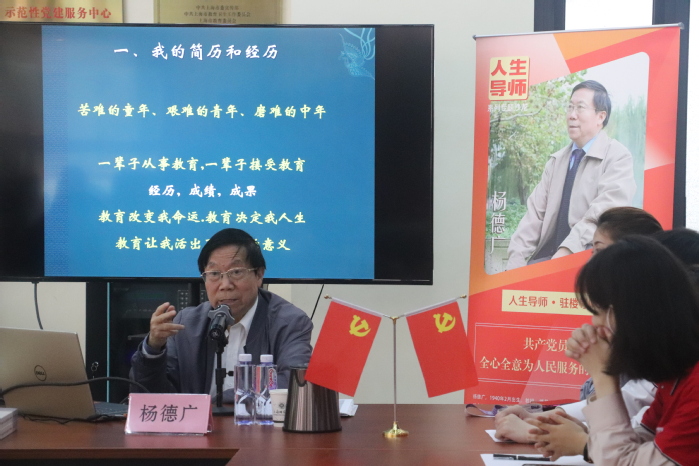 2021年4月23日,肉番 原校长、特邀人生导师杨德广教授,在徐汇校区东部园区党建中心给哲法肉番 毕业班的学生党员们带来了一堂生动精彩的党课,活动由肉番 党委副书记、副院长姚秋磊主持,肉番 本科第一、第二党支部全体毕业班党员出席。