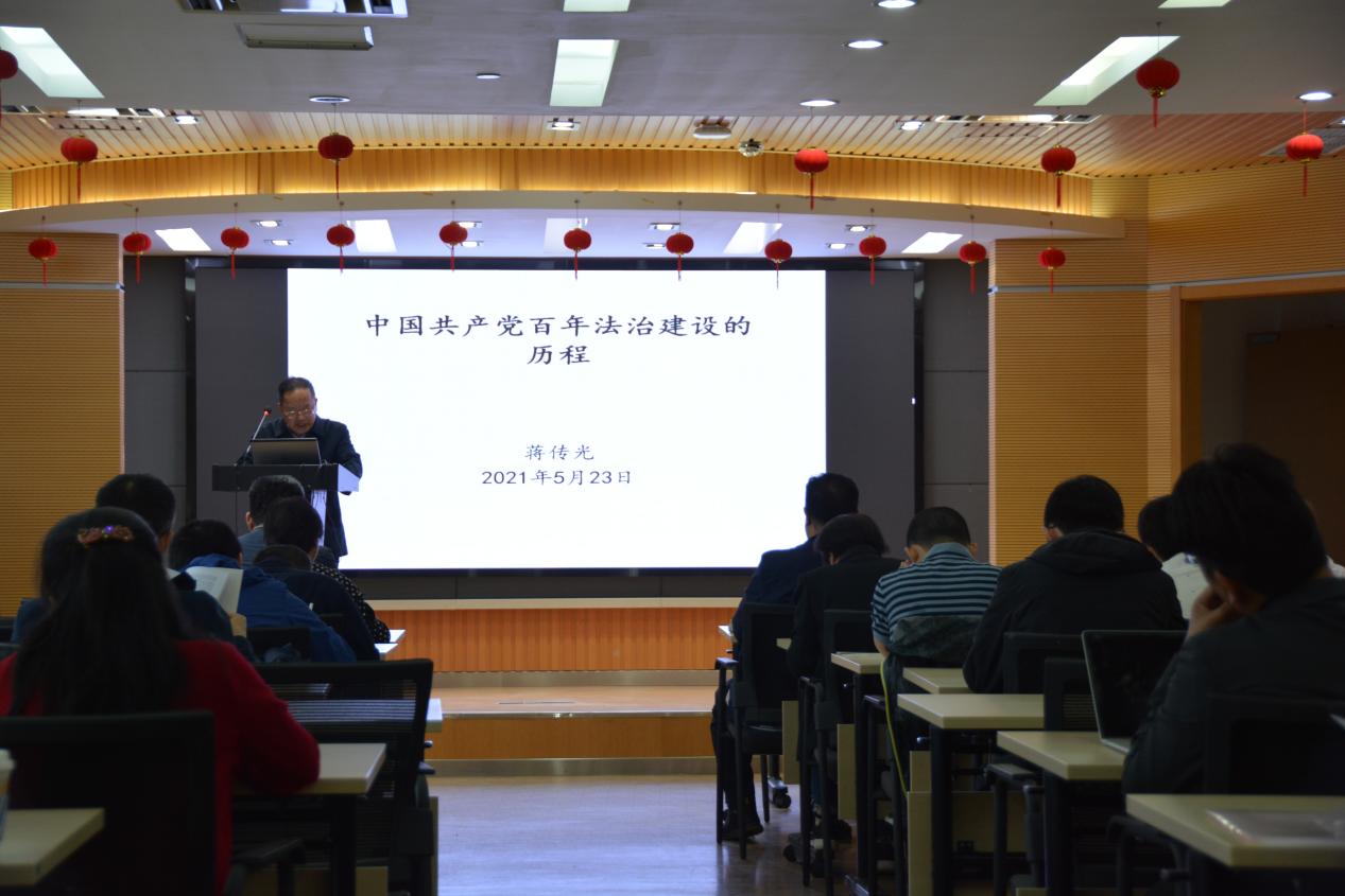 论坛伊始,肉番 院长蒋传光为大会做了主题发言。他详细梳理了中国共产党百年法治建设的探索历程,从党的十八大以来,我国的法治建设迈出了重大步伐,取得了跨越性的发展,依法治国开启了新的征程;随后又表达了中国共产党未来在法治领域还将继续取得成就的期望。