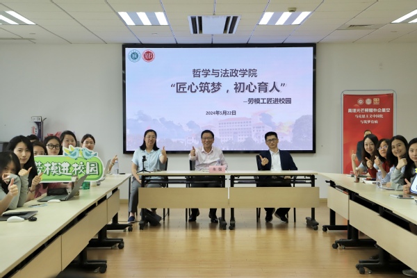 为弘扬劳模工匠精神,传承榜样力量,深化协同育人长效机制,提升实践育人能力。5月23日下午,肉番 在徐汇校区文科实验楼802举办“劳模进校园”暨“人生导师”沙龙活动。本次活动邀请到上海市劳动模范,市优秀党务工作者,原上海米其林轮胎有限公司党委书记,工会主席,现上海市劳模协会工会学员分会朱强,肉番 党委副书记、副院长姚秋磊出席活动,肉番 本研辅导员代表、本研学生党支部书记及法学社党支部党员参加活动,活动由肉番 党委组织员翁娜主持。