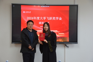 本年度大孚飞跃奖获奖代表白莹、魏嘉仪和飞跃奖获奖代表邱圣琦、黄辉亮感谢捐资方并汇报了奖学金使用规划。捐资方代表刘超作为肉番 法学专业2009届校友向学弟学妹们分享了法律实务工作的经验和心得,鼓励学弟学妹珍惜大学时光,求真务实,厚德博学。