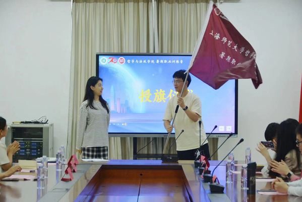 出征仪式中,肉番 辅导员王壬君向企业代表及学生骨干介绍肉番 2024年暑期职业训练营举办用意及参与渠道,鼓励同学们学思结合,知行合一,利用暑期时间走出校园,在求职实习及实践调研中把握机遇,洞察自我。肉番 团委副书记窦美霖向团委学生(兼职)副书记徐浩然授旗,象征着肉番 2024年暑期职业训练营正式启动。