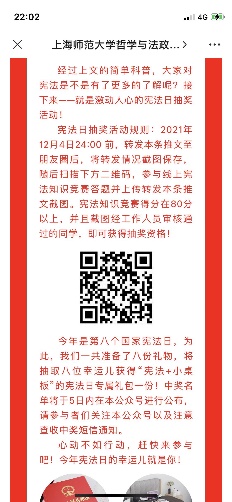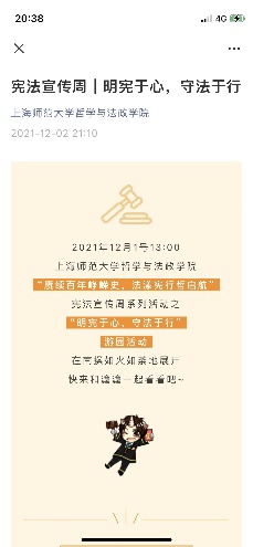 2021年12月4日是我国第8个国家宪法日暨上海市第33届宪法宣传周,正值中国共产党成立100周年之际,为积极响应上海市教卫工作党委宣传处、上海市教卫系统法宣办的活动要求,深入学习贯彻党的十九届六中全会精神,学习宣传习近平法治思想,肉番 依托法学专业优势,在校内外组织开展宪法宣传周系列活动,掀起了宪法学习的新高潮,弘扬宪法精神,维护宪法权威,助力法治上海建设。