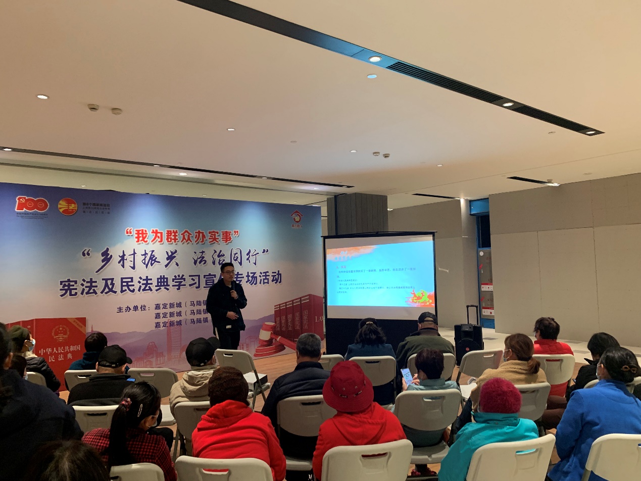 同时,由嘉定新城马陆镇法宣办主办的“‘乡村振兴,法治同行’宪法及民法典学习宣传”专场活动在吉宝绿地缤纷城如期举行,来自肉番 法律硕士专业的同学们以“普法客厅”青年普法学生讲师的身份为社区居民带来了一堂生动的普法教育课。主讲人顾哲琪同学以“人的一生”为主要线索,将原本严肃的宪法转化为生动的语言,形象地介绍了宪法与每个公民的联系,提高了现场居民朋友们对宪法的作用和地位的认识。现场参与活动的居民朋友们对普法课堂给予了高度评价。