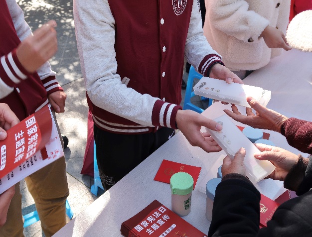 12月3日,为加强广大师生尊法学法守法用法的意识,肉番 在学校徐汇校区东部三教门口和西部香樟苑广场同时开展校内线下宪法宣传活动。活动包含学习宪法文本参与宪法知识竞赛、“学法尊法从我做起”朋友圈宪法宣传、“谈谈我心中的宪法”街头采访等丰富的互动参与形式。活动现场,同学们翻阅学习宪法小红本、与宪法合影发送朋友圈呼吁学习宪法、对“心中的宪法”侃侃而谈的场景,成为国家宪法日前夕校园最美的风景线。