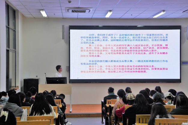在宪法宣传周前期,肉番 法学社成员于2021年11月3日、17日和24日先后前往旅游肉番 、马克思主义肉番 和建筑与工程肉番 开展普法活动,为同学们带来了宪法专题讲座。主讲人从宪法的概念、宪法的分类、我国宪法制定和发展完善历程、宪法内容、宪法基本原则五个维度向各肉番 同学普及了宪法知识,加深同学们对宪法的了解,同时进一步在广大同学中树立了宪法是国家根本大法的观念。