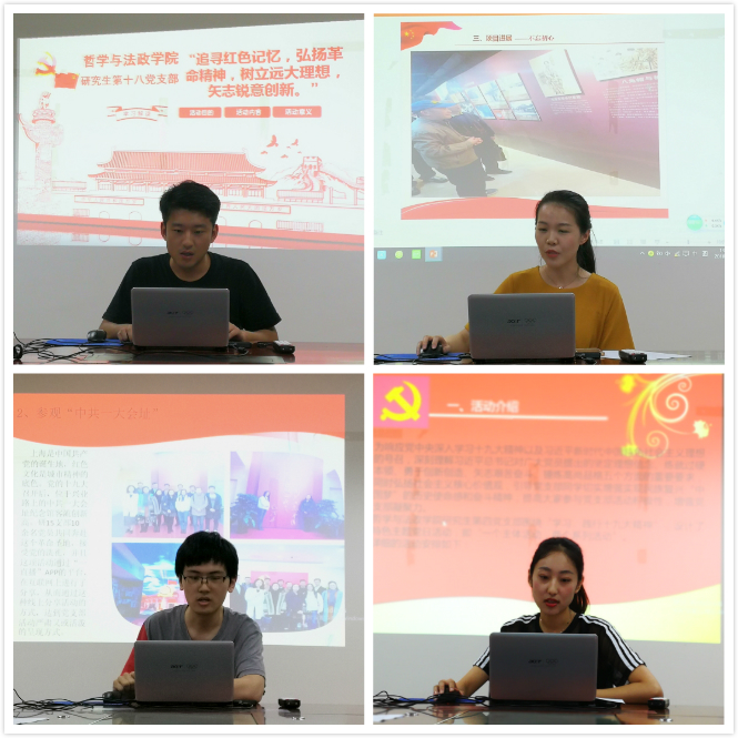 会上,各个党支部围绕主题党日开展背景、实施项目、活动流程、取得成效以及党支部建设、党员先锋模范作用发挥等方面进行充分展示。从组织观看《厉害了,我的国!》到参观中共一大会址,从重读党章到深学党规党纪,从研读红色经典到开展志愿服务活动,各党支部认真贯彻关于“学懂弄通做实党的十九大精神”的要求,积极培育和践行社会主义核心价值观,传递青春正能量;开展各种具有肉番 和本专业特色的党日活动,增强了党员责任感与党性修养,在理论与实践结合中增长了见识、提升了自我。