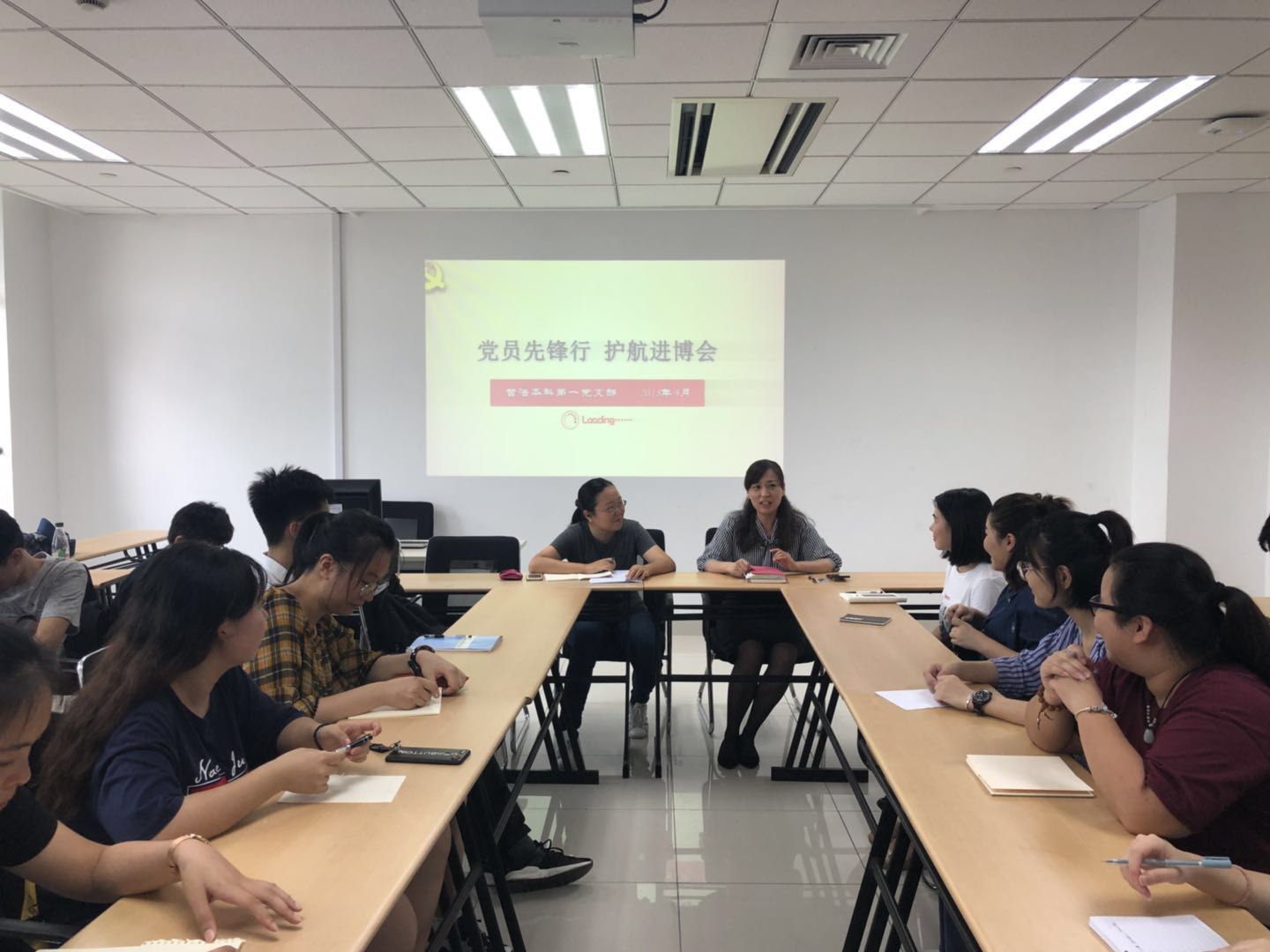 2018年9月19日,肉番 本科第一党支部“党员先锋行,护航进博会”主题党日活动在徐汇校区文科实验楼206顺利召开。党日活动由党支部副书记柳箫同志主持,肉番 党委副书记、副院长陈燕老师出席会议并讲话。