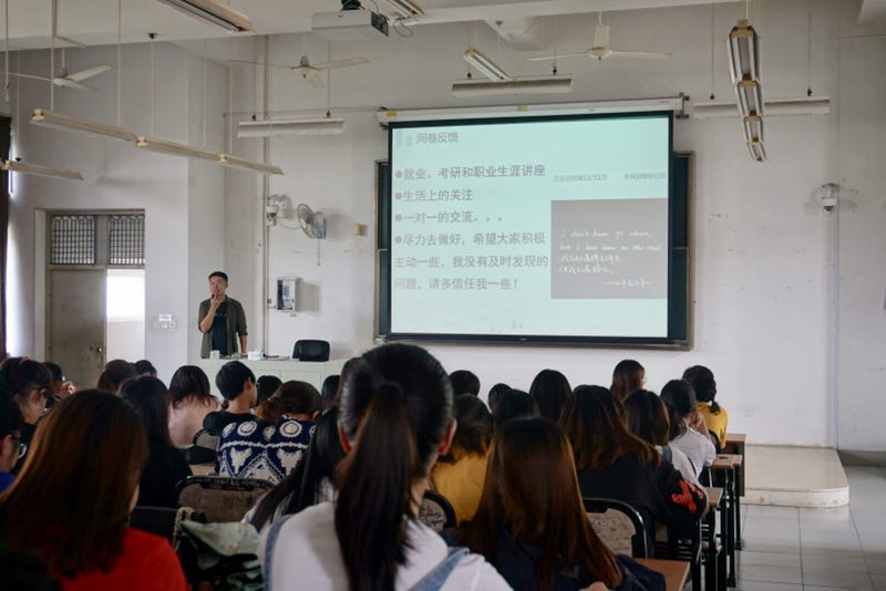 本次年级大会分为四大板块进行,上学期学分绩点提醒、职业发展提醒、调查问卷反馈以及小课堂:文献综述和简历。首先胡老师对上一学年人资、法学专业共四个班级的学分绩点情况进行分析总结,并提醒同学们注意计算培养方案中个人的学分情况,提前做好统筹安排,以免大四囿于学分不够的困境。接下来是职业发展方面,老师针对当前对于未来还没有打算或者认识不够清晰的同学们提出职业规划建议,提醒大家要尽快思考,做好切实打算并按照目标一步步前进。在调查问卷反馈方面,胡老师对开学初发放的问卷调查结果进行分析,并提出接下来的专项沟通方式,鼓励大家有疑惑及时找辅导员沟通,安排好大三学年的各方面规划;最后根据本学期的学年论文,胡老师做了简单的文献综述指导,从格式和规范上给同学们启发,同时对如何做一份好简历给了专业性的建议。