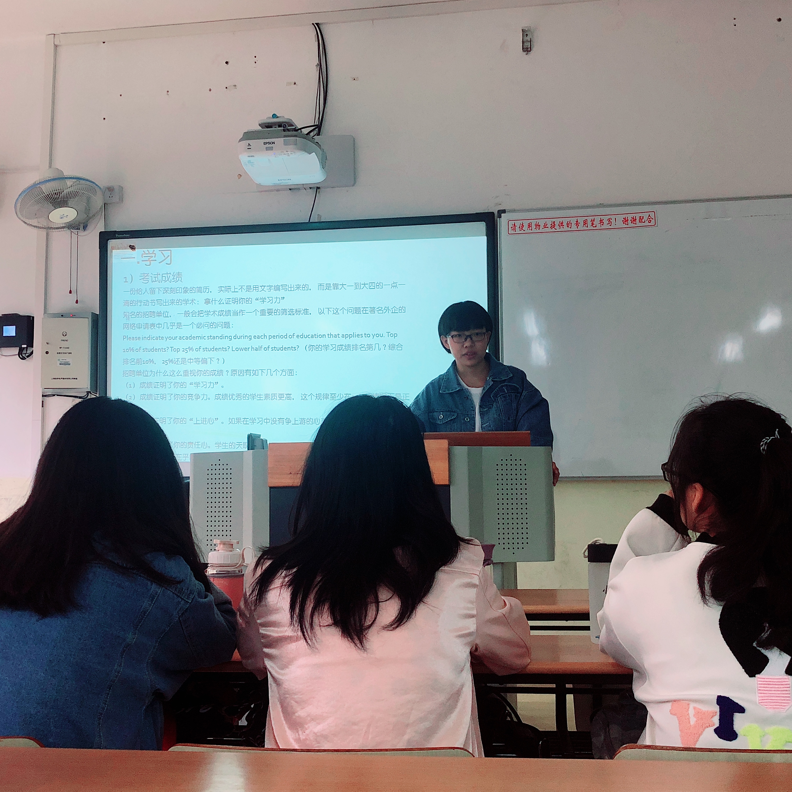 之后,班长进行了更深层次的引导和补充,并分小组进行关于毕业后自己的人生规划“考研还是就业”的讨论,各抒己见,分享交流各自的想法,使大家对自己的大学生活有了更加明确的规划。随后,团队小游戏“五毛和一块”让大家意识到,在大学生活中还有一群活泼可亲的同学,促进团队凝聚力的增强,使大家共同督促,共同进步,一起hold住大学生活。最后,由班长进行班会的总结,“决定我们成为什么样的人不是我们的能力,而是我们的选择”,期望同学们能够真正规划好自己的大学生活。