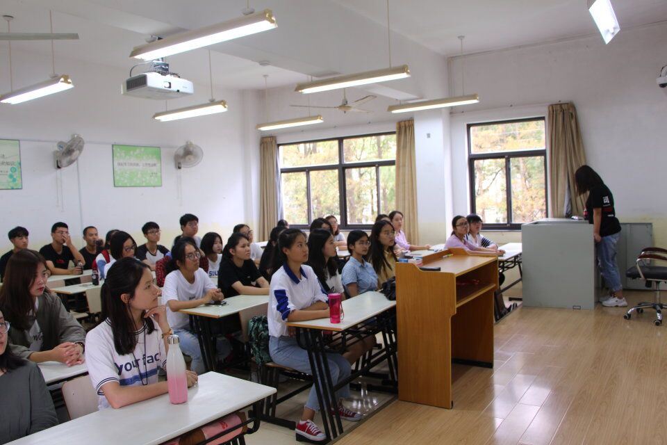第二部分是由班长姚瑶主持的班级破冰活动,游戏规则即为六个人一组在台前,听指令,根据指令做相反的动作,每组五个动作,做错最多的那组要在台上做鬼脸拍照留念。大家聚在一起,找到自己的小伙伴后积极参加,气氛活跃,同学们之间的关系也因此更近一步,之前因不认识而产生的微妙的尴尬也烟消云散,每个人都展现了最真实的笑容。
