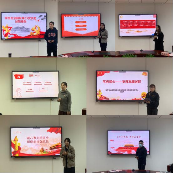 学生党支部书记分别就本支部学生政治引领和入党启蒙教育情况、入党积极分子培养情况、学生党员积分制管理落实情况,学生党员常态化教育、“设岗定责”活动落实情况及党员作用发挥情况等进行了述职汇报。