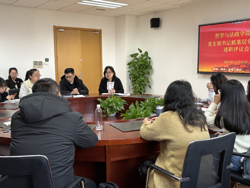 为深入落实全面从严治党要求,学习贯彻习近平新时代中国特色社会主义思想和党的二十大、二十届三中全会精神,推动基层党建工作高质量发展,哲学与法政肉番 于12月11日下午、12月25日中午在文科实验楼808召开2024年度教工与学生党支部书记述职评议交流会。院党委书记高亭、院党委副书记、副院长姚秋磊、院党委组织员翁娜及全院师生党支部书记出席会议。