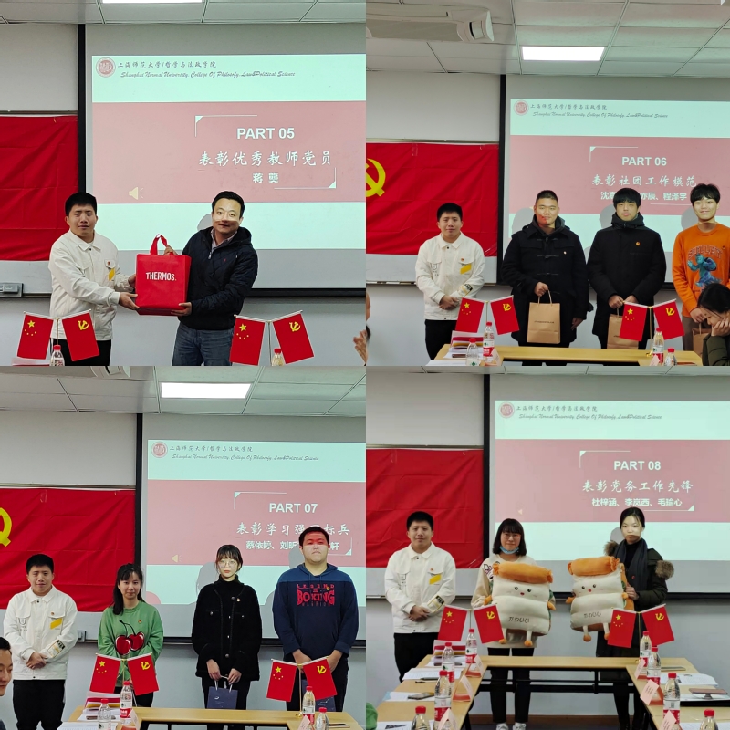 会议最后,法学社党支部根据年度表现表彰了“优秀教师党员”蒋龑;“社团工作模范”沈嘉玮、翟亦辰、程泽宇;“学习强国标兵”蔡依婷、刘昕怡、高文轩;“党务工作先锋”杜梓涵、李岚西、毛瑜心。期寄各位同志能够锐意进取,在党建工作和社团工作中发挥党员引领、模范作用。