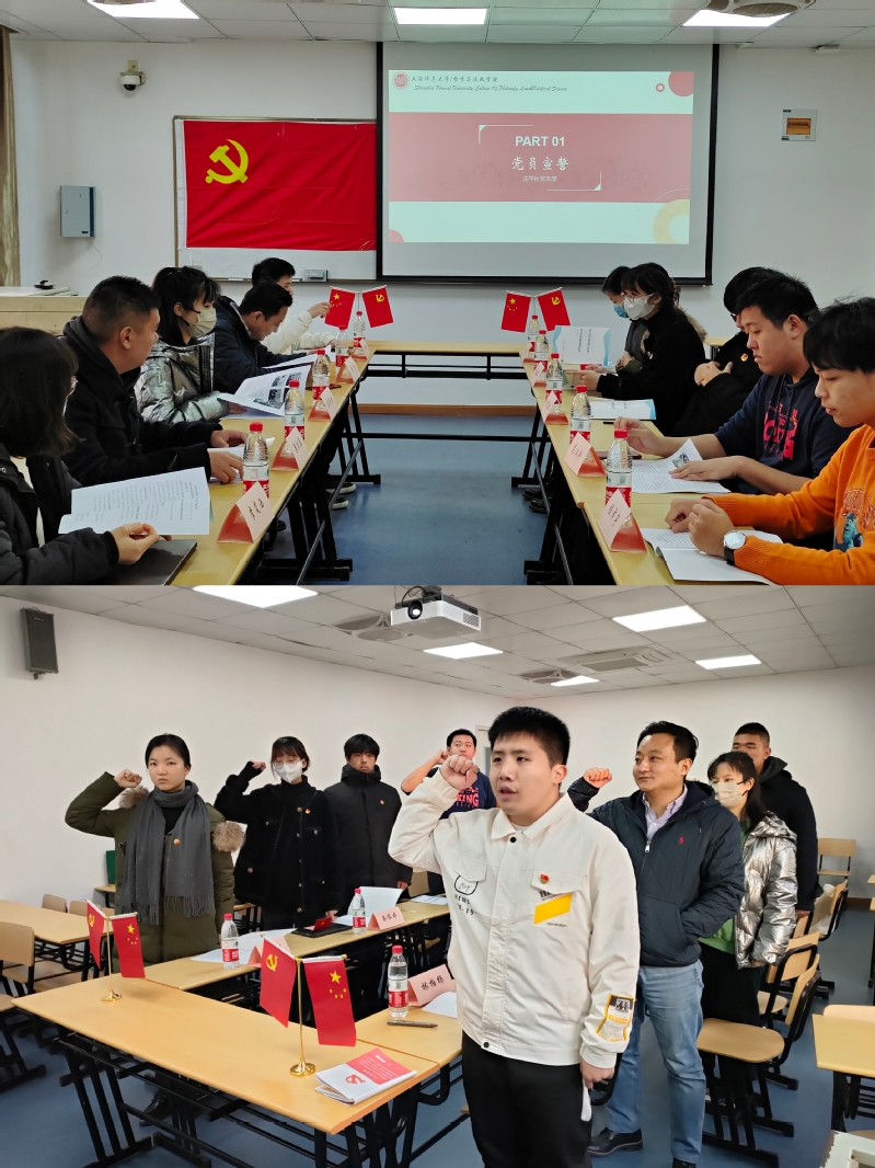 会议伊始,法学社党支部举行庄严的入党宣誓仪式,由支部书记林柏杨领誓,新发展的预备党员毛瑜心同志及支部全体预备党员、党员共同宣誓。佩戴党员徽章,高举右拳,新老党员同志们用铮铮誓言表达对党忠诚、为民奉献的信心和决心,千钧誓言中凝聚着初心力量,激励新老党员坚定理想信念,永葆赤子之心。