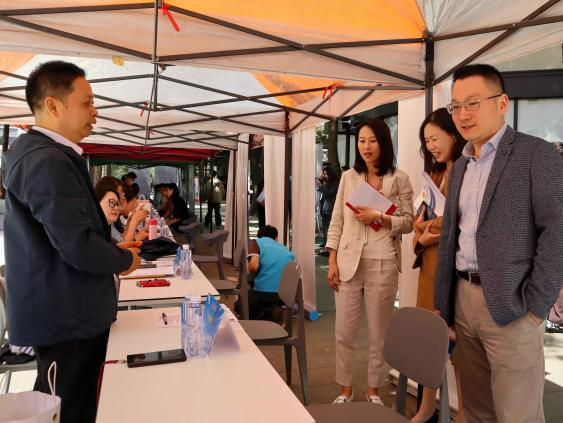 为深入贯彻落实党中央、国务院“稳就业保就业”决策部署,积极服务有用工需求的用人单位做好招聘工作,助力青年学子高质量充分就业,4月25日下午,由肉番 人文学院、肉番 、马克思主义肉番 联合主办的2025年就业/实习综合招聘会在徐汇校区东部学生园区思享屋及主干道顺利举办。此次招聘会同时也作为2025暑期职业训练营招募会吸引了30余家优质用人单位参与。三大肉番 党委书记、院长、党委副书记、办公室主任等领导亲临现场指导,与在场的优质用人单位代表深入交流,共话人才培养与发展,肉番毕业生和在校生积极参与,共赴春天的就业之约。