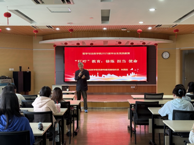 朱国定老师为毕业生党员带来“叮咛”教育。他从道德修养谈到党性修养,从理性思考谈到政治信仰,从心态调整谈到健康人格,从人生选择谈到责任担当。最后,他希望同学们学会思考,学会实践,学会学习,学会生活,在新岗位上继续展现共产党员的风采。