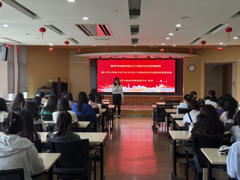 高亭老师为毕业生党员带来了专题党课,教育引导毕业生党员深入学习贯彻习近平总书记关于加强党的作风建设的重要论述,讲了落实中央八项规定精神的成效经验,希望大家不忘初心、牢记使命,强化作风建设,扣好迈入社会的“第一粒扣子”,更好地肩负起时代重任,为实现中华民族伟大复兴贡献青春力量。