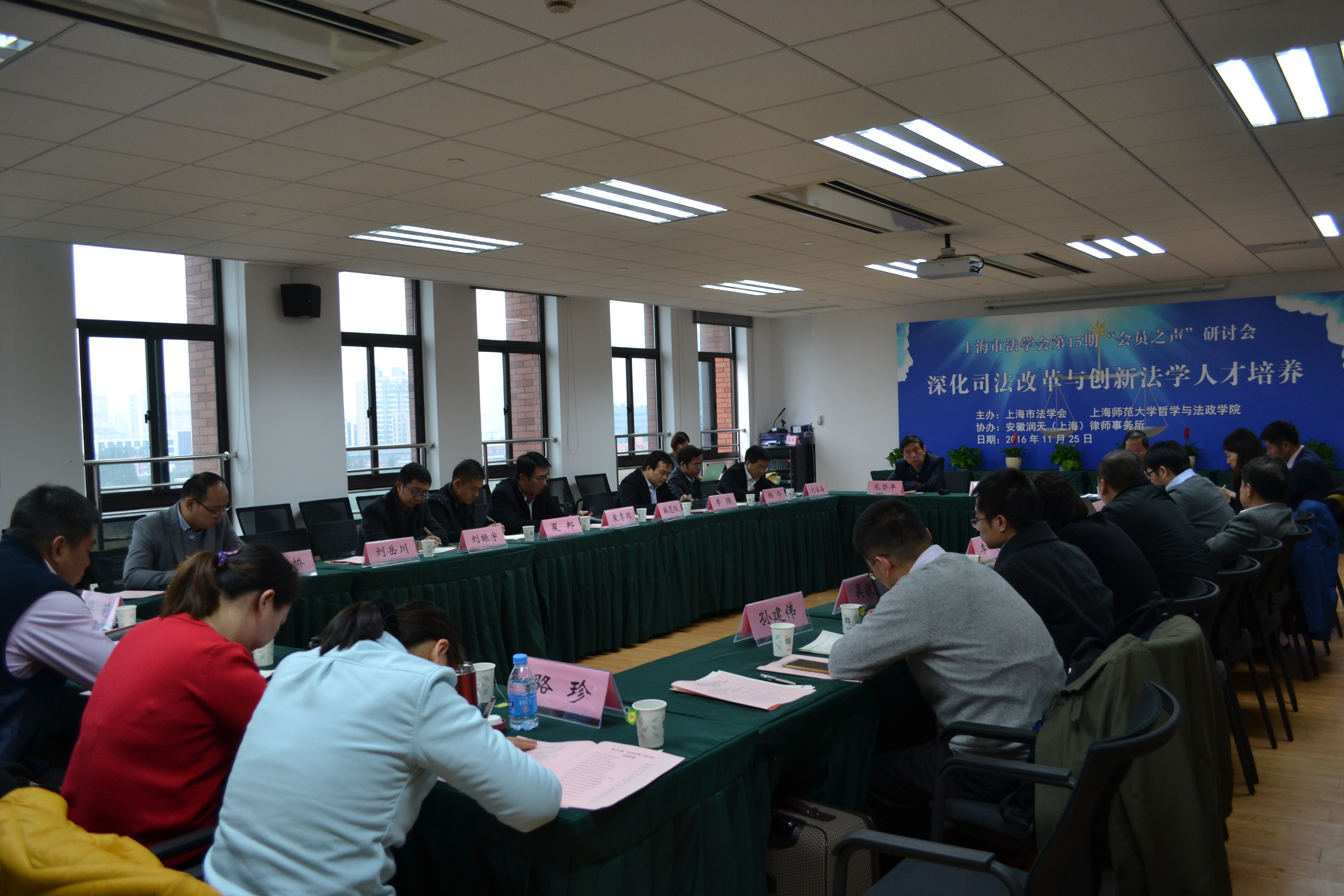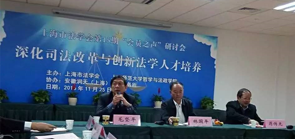 共同主办、安徽润天(上海)律师事务所承办的上海市法学会第15期“会员之声”顺利举行,主题是“深化司法改革与创新性法学人才培养”。上海市法学会秘书长毛坚平主持了此次会议。