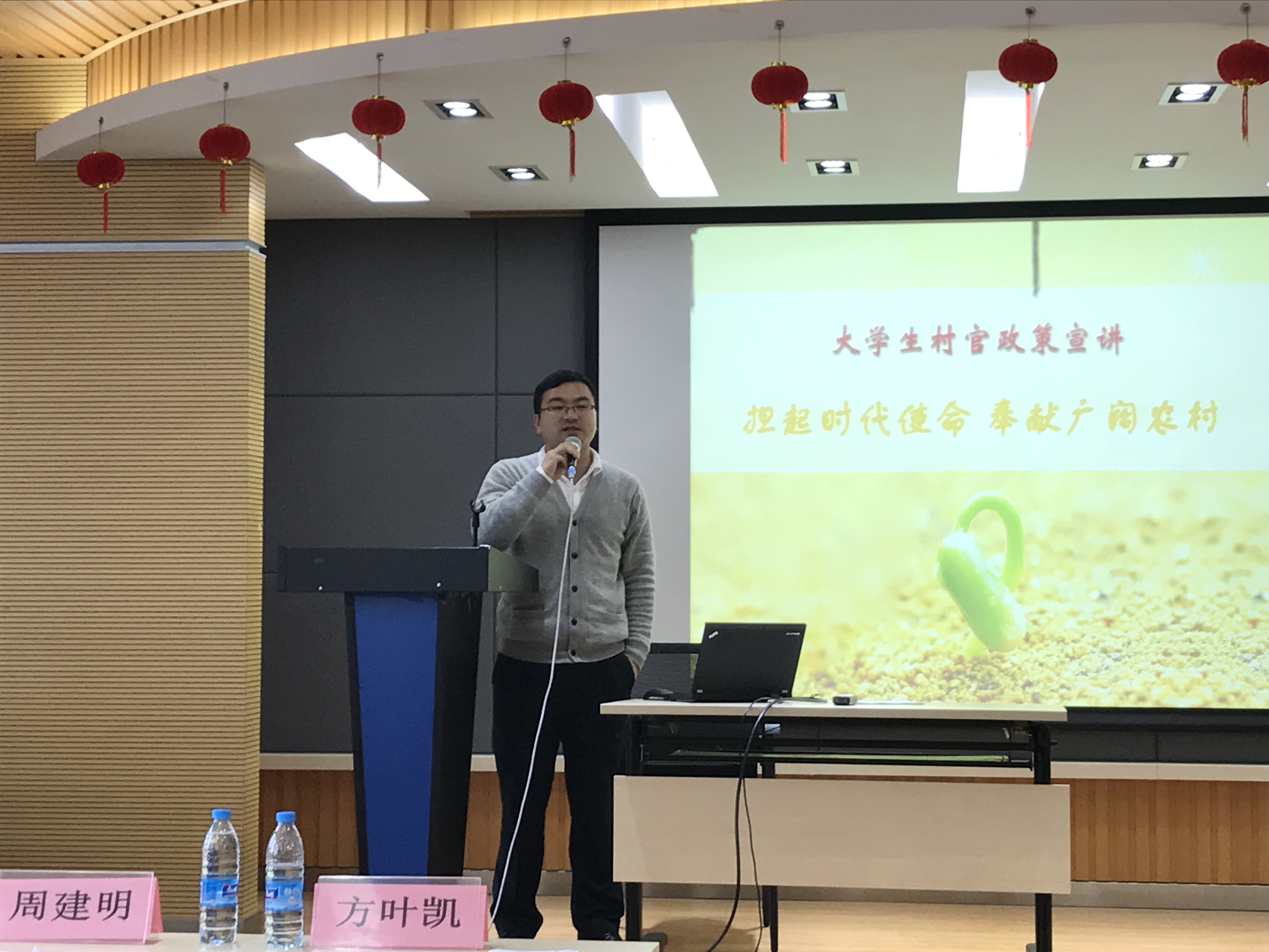 首先是由方叶凯校友主讲的基层就业项目政策。方叶凯校友分别从村官政策解读、常见问题解答、特色工作事例和个人经验感想四个方面给大家详细阐释了基层工作的相关政策和工作概况。其中指出,村官工作主要是 “围绕服务型党组织建设、服务农村发展、服务社会公益、服务文化建设、服务生产生活”展开的。除了对村官工作的介绍,方叶凯校友还对如何报考、工资待遇、村官去向等与同学们切身利益相关的问题做了详细解释和指导。最后,方叶凯校友还提醒大家村官招录将在今年开始推行新的政策,即大学生村官招录工作与公务员招录工作并轨,选聘对象统一参加公务员招考,通过竞争择优录用大学生村官。所以建议同学们近期关注上海基层党建网、21世纪人才网、上海市教育考试网等了解2017年大学生村官招考公告以着手准备相关考试。