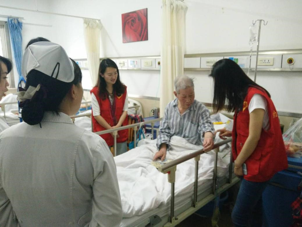 523日下午115分,各位党员准时在学校东部门口集合,带着给病房里的老人买的一些苹果、鲜花、面包等小礼物一起出发前往斜土街道社区卫生服务中心。在服务中心杨老师的帮助下,我们分别到卫生服务中心的四病区和六病区对一些患病的老人进行了探访、也有几名党员留在了一楼为一些老人测血压。在病房中,在病房中,各位党员同志亲切的与病房中的老人交谈,并把带来的一些礼物送给病房中的老人,有了大家的关系和慰问,能看的出老人的脸上洋溢着幸福和喜悦,给病房增添了很多的温馨的元素。