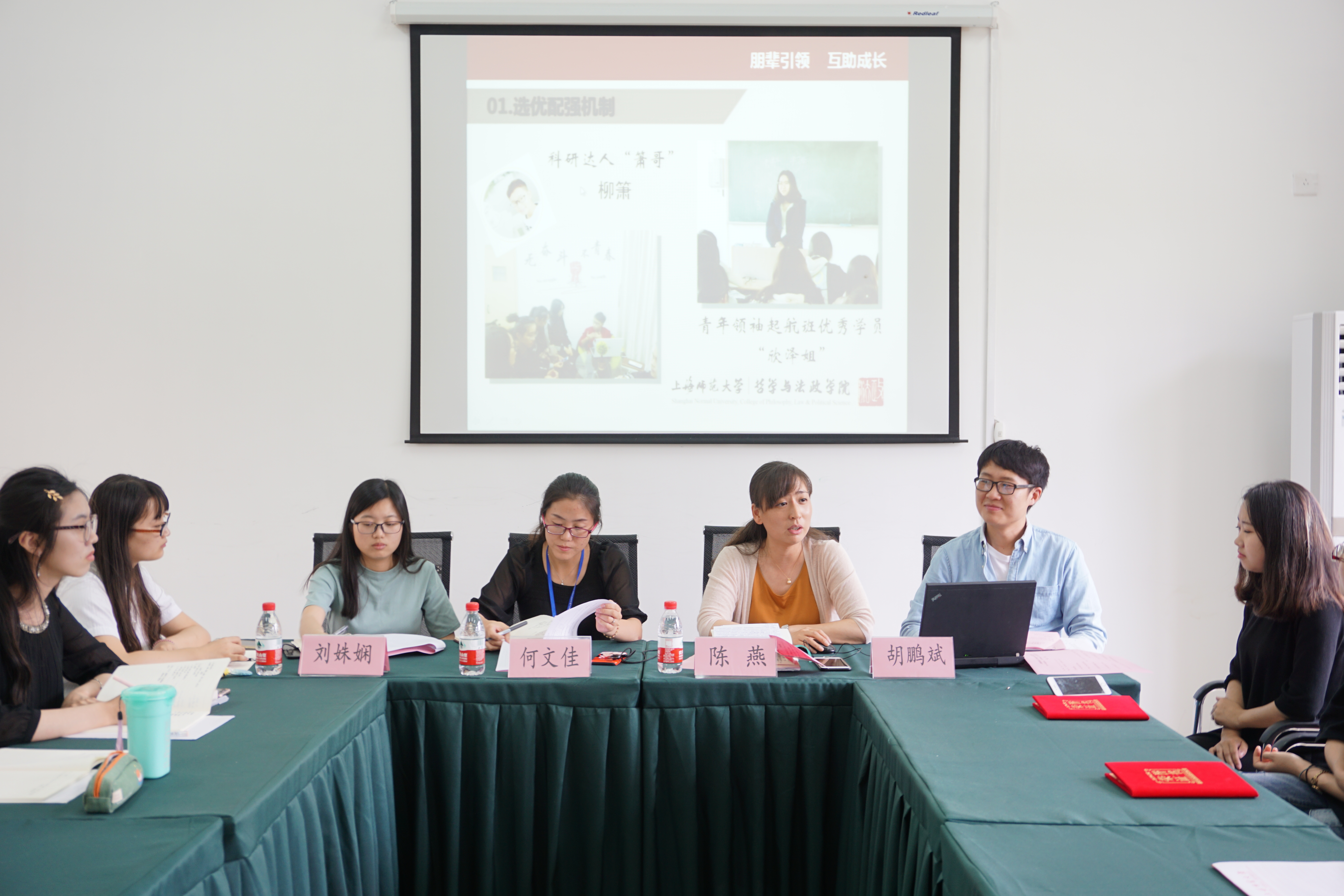 会议伊始,陈燕老师表达了对15级导生团队的感谢,肯定他们对导生团队建设探索做出的贡献,并对8位15级党员、入党积极分子导生进行表彰,其中李欣泽同学荣获肉番 优秀导生;宋雯雯、柳箫和吴柯仪同学荣获肉番 优秀导生;其他四位导生也分获单项荣誉称号。接下来,陈燕老师以具体的调研数据,从导生队伍的选配、交流、考核、培养等方面梳理导生机制建设,回顾15级导生工作,启发新思考。“今天我以上师大与新生同学间‘红娘’的身份开展导生工作”,对接16级行政管理2班的李欣泽以诙谐而恰当的比喻开始,向新一届导生传授方法,强调言行得体,尊重新生自主权,做好“娘家人”,学会真正陪伴新生。