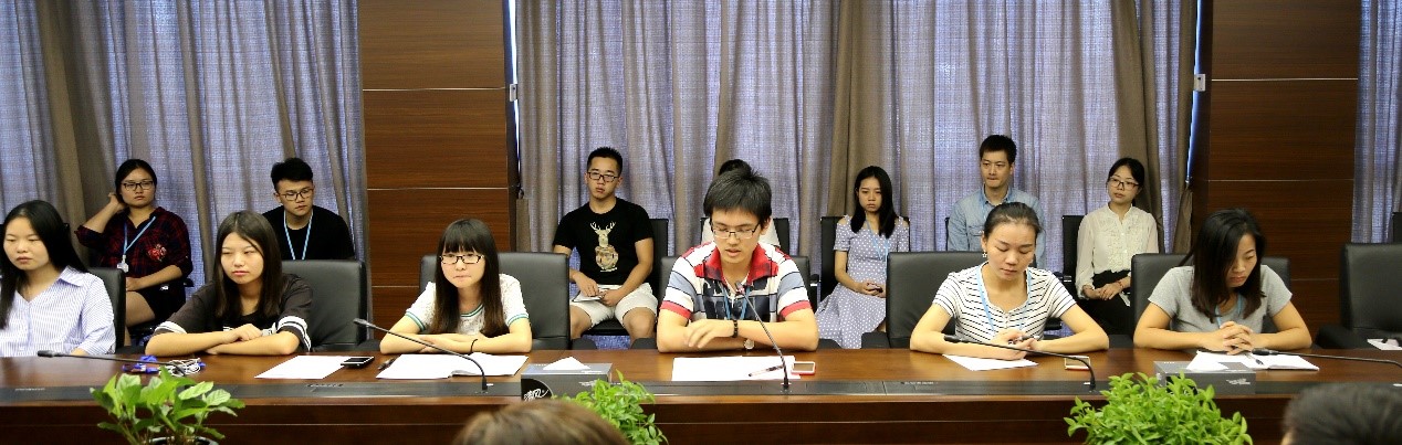 习生们参与的法院活动、与带教老师相处的感受、取得的实习成绩等几个方面对我校实习生工作进行了总结汇报。随后,陈雷主任邀请了其他同学谈谈自己的感想。三个月的时间里,每一位实习生都有许多感触,也借此机会向上铁法院的各位老师表达了自己的感激之情。