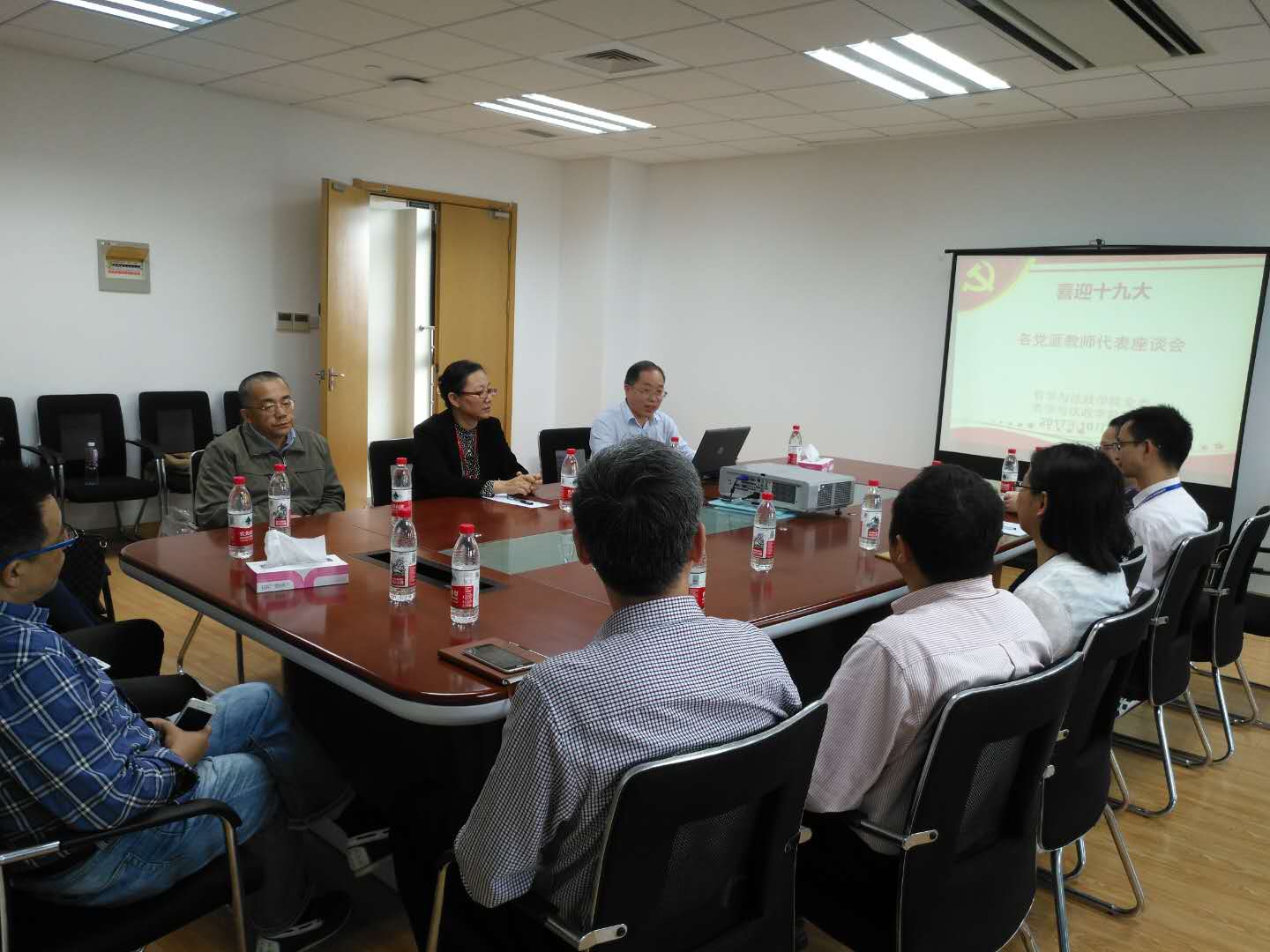 2017年10月18日,肉番 在文科实验楼808室隆重举行民主党派人士座谈会,喜迎党的十九大召开。全院民主党派人士、少数民族人士、欧美同学会成员和侨联人士近20余人参加会议,肉番 党委书记贺朝霞、副院长朱新光、韩思阳出席会议并讲话。此次座谈会由院工会主席赵银亮主持。