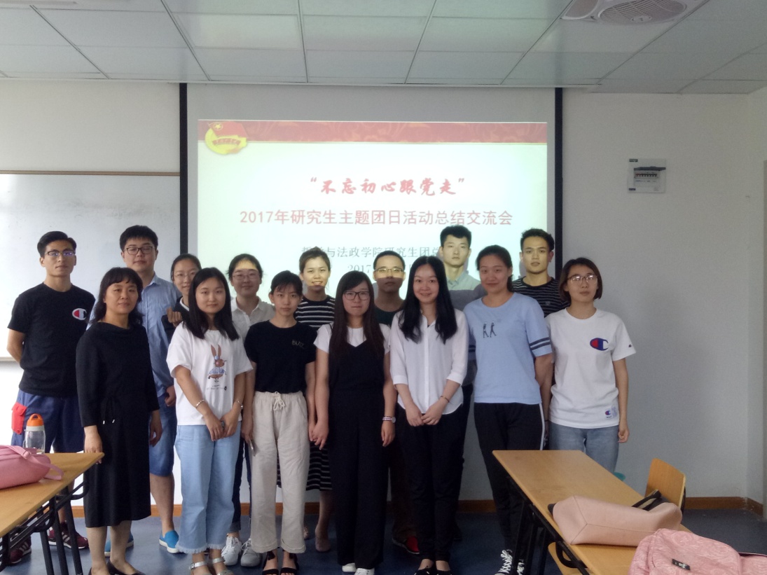 6月7日下午,肉番 研究生团总支在三教304举办了“不忘初心跟党走”2017研究生主题团日活动总结交流会,本次交流会由肉番 研究生团总支组织,共有10个研究生团支部参加汇报交流,研究生辅导员沈鸿雁老师和王秀萍老师也出席了本次交流会。至此,历时两个多月的研究生主题团日活动圆满落幕。
