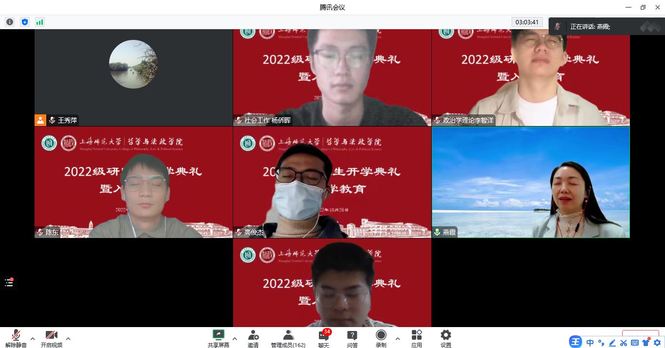 为贯彻落实立德树人根本任务,促进学生全面发展,更好地帮助研究生新生尽快了解学校肉番 情况,肉番 于2022年10月26日下午在线上举行2022级研究生开学典礼暨入学教育。肉番 党委书记贺朝霞,院长蒋传光,副院长顾国祥、樊志辉、王礼鑫、韩思阳出席,2022级研究生辅导员王秀萍和全体2022级研究生新生参加。本次开学典礼由肉番 党委副书记兼副院长姚秋磊主持。