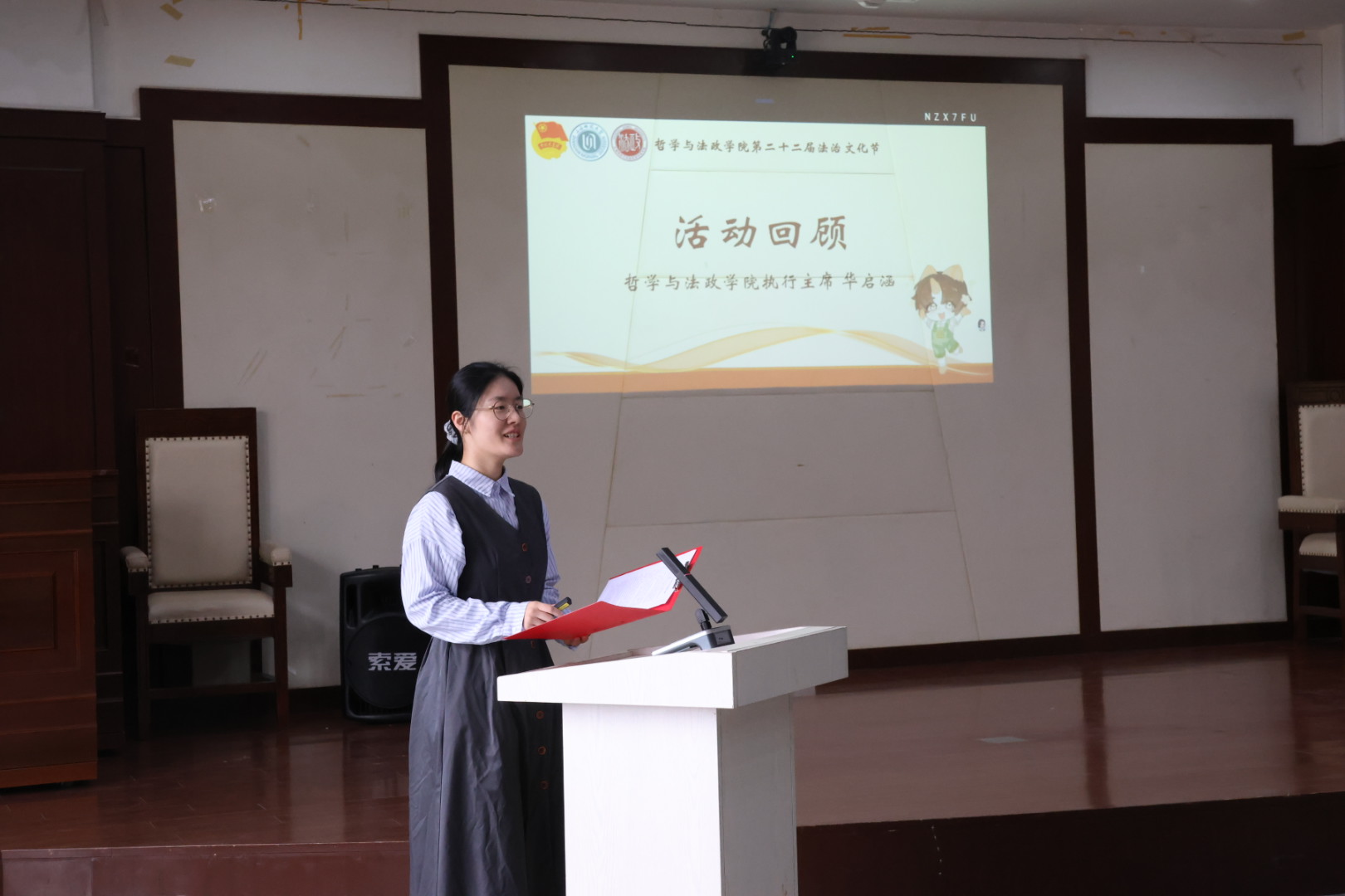 开幕式伊始,学生会执行主席华启涵同学回顾了历届法治文化节的丰硕成果,详细介绍本届文化节的系列活动,并号召同学们积极参与。随后,肉番 团委书记、2024级辅导员王壬君致辞,强调肉番 将立足品牌优势、发挥专业特色,引导青年进一步践行法治理念,并预祝本届法治文化节圆满成功。