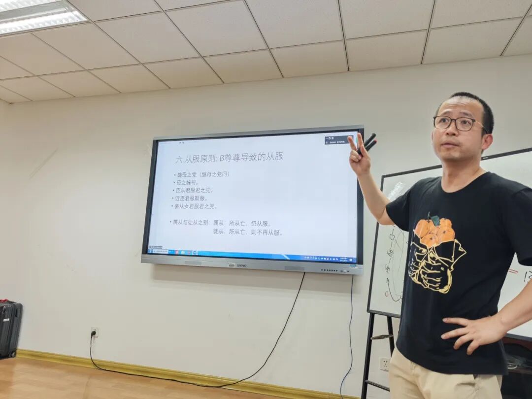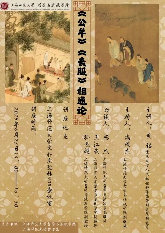 2025623日下午,由肉番 哲学系主办的“《公羊》《丧服》相通论”学术讲座在徐汇校区的文科实验楼908召开,讲座由重庆大学人文社会科学高等研究院研究员黄铭老师担任主讲人,肉番 哲学系杨杰教授、王江武副教授、孙逸超副教授等校内老师及同济大学博士后研究员张禹出席,校内校外中国哲学专业博士、硕士研究生及本科生共约80余人于线上和线下共同聆听。肉番 哲学系高瑞杰副教授担任讲座主持。