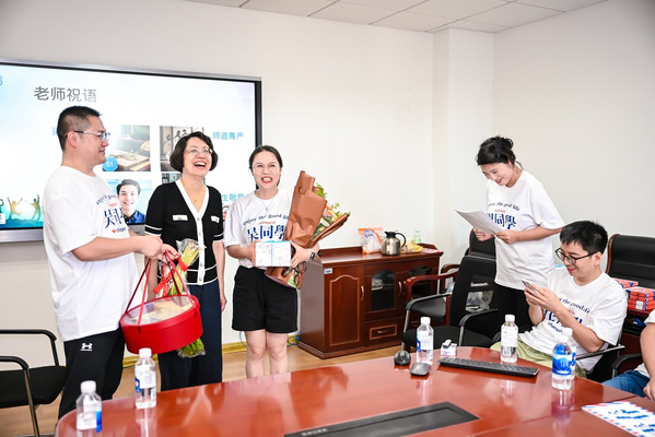 “自行束脩以上,吾未尝无诲焉。”聚会伊始,同学们用《论语》中的古礼向恩师环建芬副教授献上“束脩六礼”——以知识为脯、品德为枣、勤勉为芹、赤诚为红豆、思辨为龙眼、济世为莲子,竹篮里的六样信物,恰如十年前课堂上播下的种子,如今已在各自的人生土壤里生根发芽。衷心感谢环老师顶着烈日,拨冗而至,代表学院向我们表达殷殷关切。十年来,我们也不负学院和老师的期待,努力践行着学校的校训:“厚德、博学、求是、笃行”。