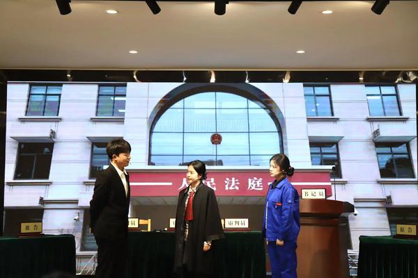 启动仪式上,肉番 法学社自编、自创、自导的模拟法庭情景剧《晓燕维权路》进行了表演。
